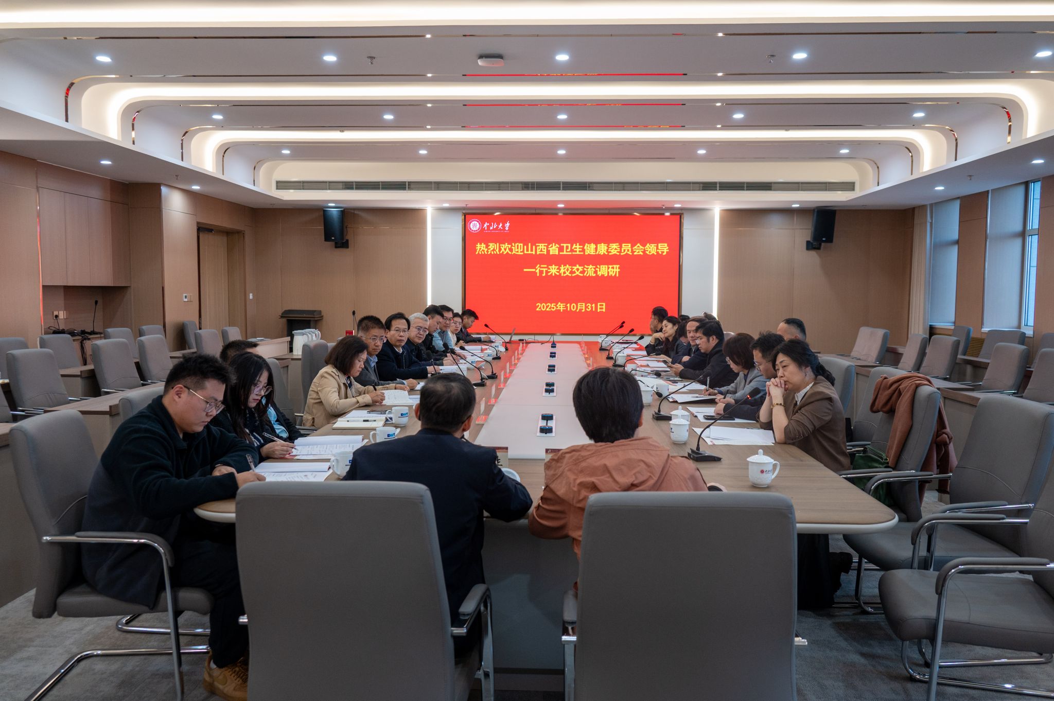 10 月 31 日 ,山西省卫生健康委员会党组成员、副主任张少然一行来校调研,座谈会在仪器与电子学院312会议室召开。校党委书记张晓永、党委副书记赵文军出席座谈会。省卫健委、山西医科大学第一附属医院、山西医科大 -
