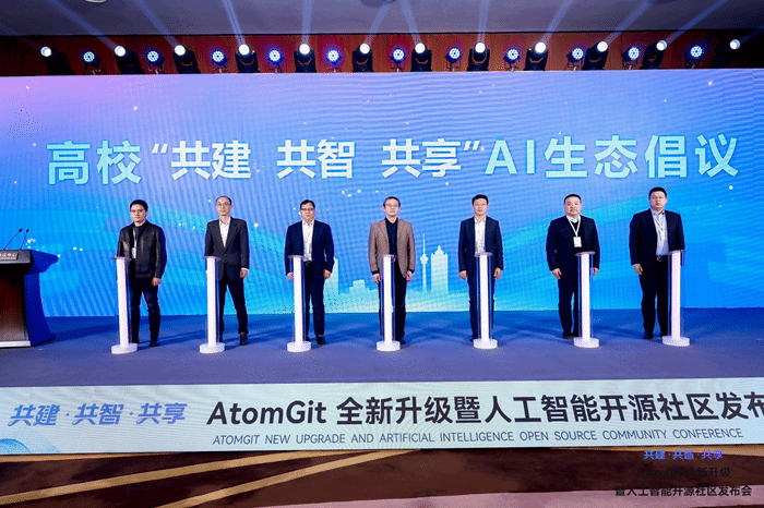 10月28日,在北京国家会议中心召开的“共建·共智·共享——AtomGit全新升级暨人工智能开源社区发布会”上,我校计算机科学与技术学院负责人代表学校作为首批积极响应并入驻AtomGit平台的7所高校之一,与北京航空航天 -