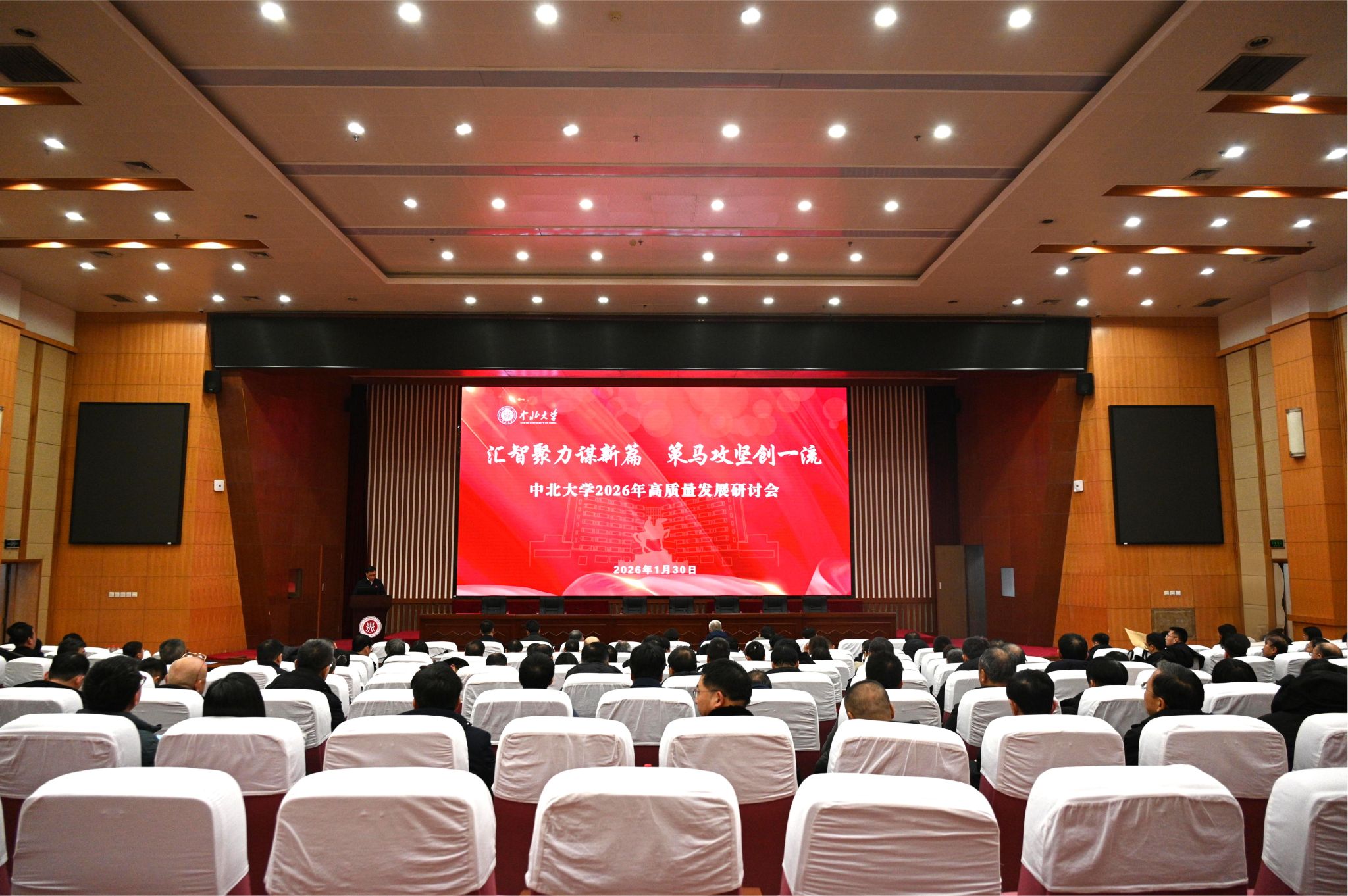 1月30日,我校2026年高质量发展研讨会在图书馆报告厅召开。全体校领导出席会议,全校处级干部(含挂职干部)、二级教授、国家级人才称号获得者参加会议。会议为期一天,聚焦学校“双一流”创建与高质量发展核心任务 -