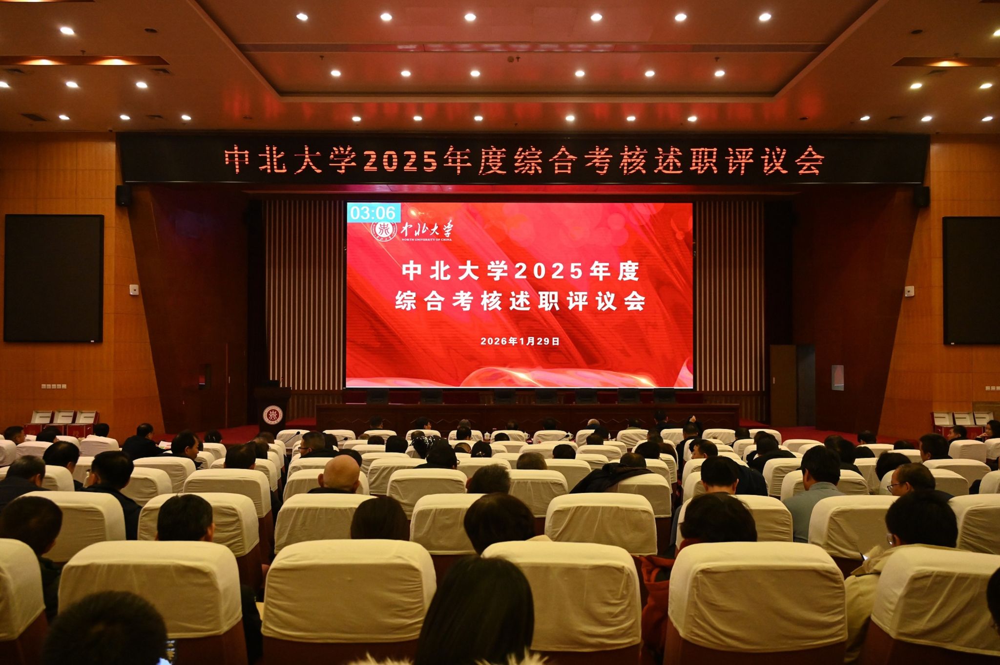 1月29日,我校2025年度综合考核述职评议会在图书馆五层学术报告厅召开。全体校领导出席。学校全体中层干部参加。学校党政管理机构、群团组织、教辅机构负责人及教学机构院长等围绕本单位年度工作目标任务完成情况、2 -