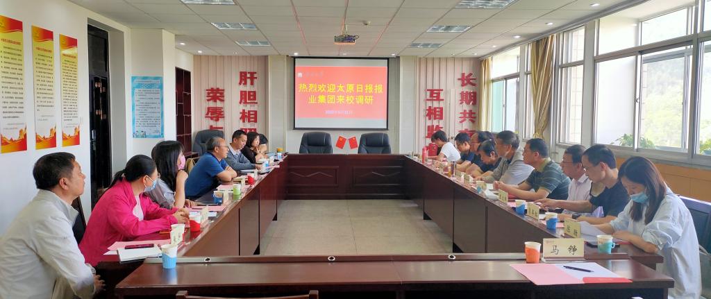 党委宣传部部长薛实军代表学校对太原日报报业集团党委书记、社长宋立纲一行来校调研表示热烈欢迎。他深情讲述了自己与太原日报社的渊源与情结,并表示,这是一次上门传经送宝的难得机会,也是一次加深了解、增进友谊、促进合作的良好契机。他表示,学校红色基因深厚,且自身特色和优势突出,有许多值得挖掘和报道的亮点,希望双方能通过交流与合作,多层次、多角度、多渠道拓展共同合作的空间,聚焦平台联动,积极传递正能。