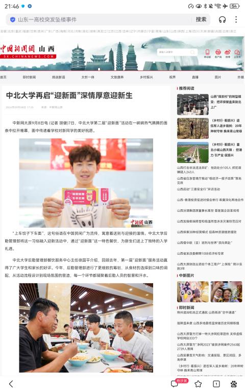 中北大学后勤管理部餐饮服务中心主任徐国平介绍,回顾去年,第一届“迎新面”服务活动赢得了广大学生和家长的好评。今年,后勤管理部进行了更细致的筹划,从食材的选择到口味的调配,从活动流程设计到现场氛围的营造,每一个环节都凝聚着后勤人员的智慧和汗水。