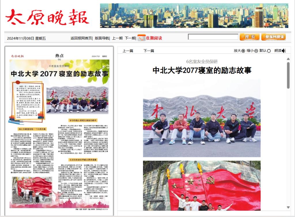 近日,中北大学机电工程学院同一寝室的6名毕业生全员保研,成为学校的热点新闻。