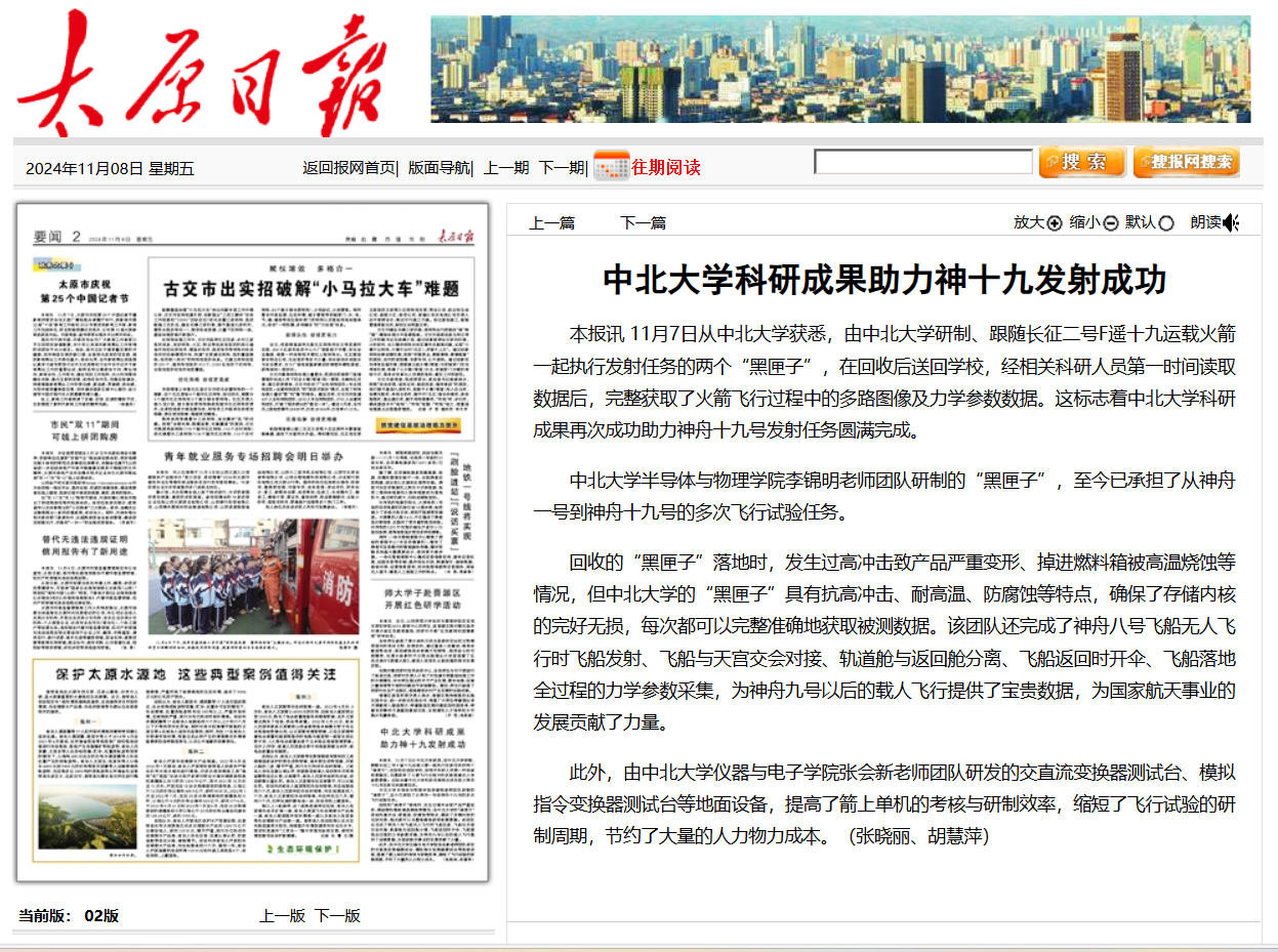 中北大学半导体与物理学院李锦明老师团队研制的“黑匣子”,至今已承担了从神舟一号到神舟十九号的多次飞行试验任务。