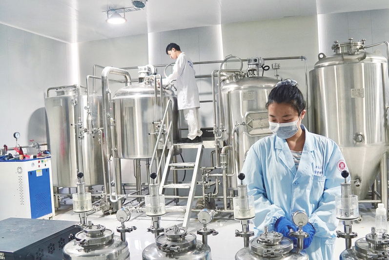 科研人员在中试基地精酿啤酒车间开展功能啤酒酿造实验