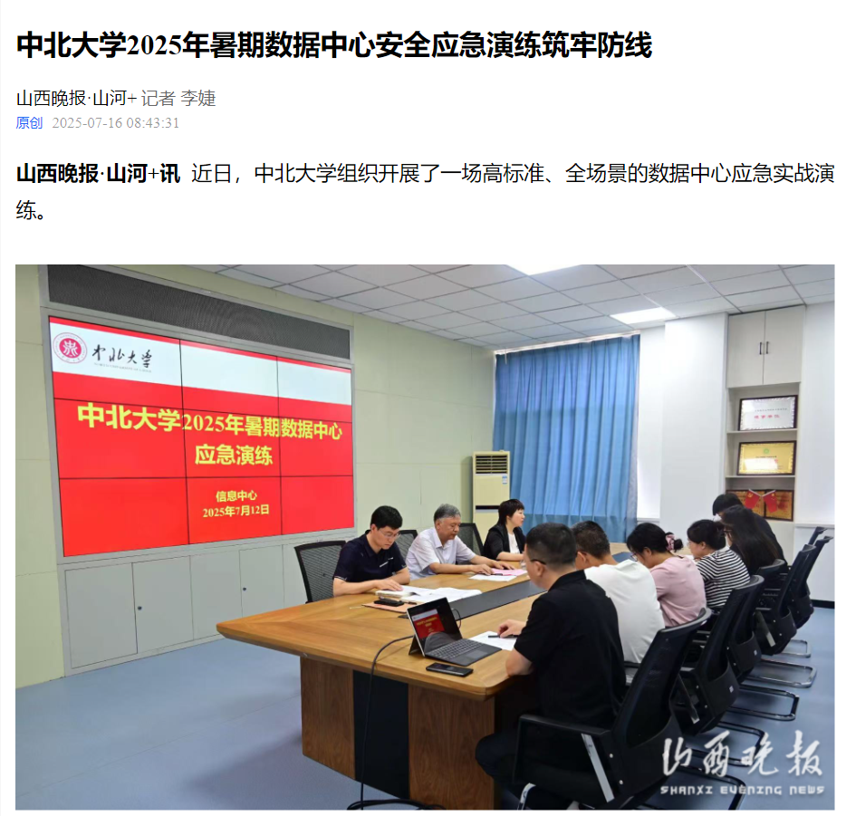 近日,中北大学组织开展了一场高标准、全场景的数据中心应急实战演练。