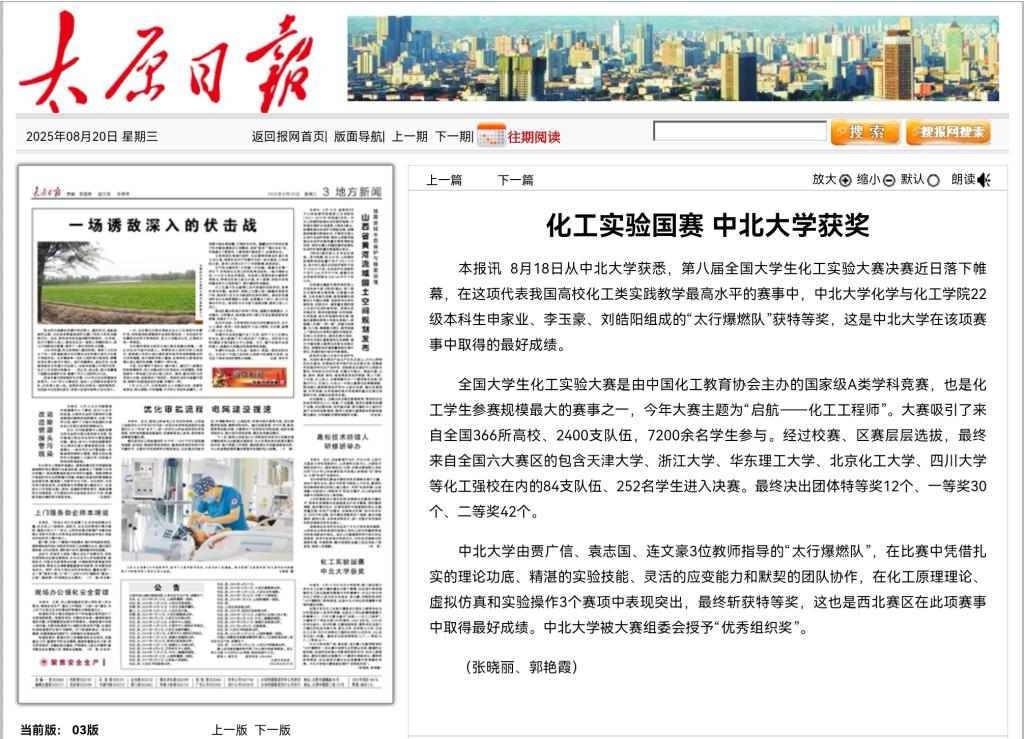 链接:太原日报数字报-化工实验国赛 中北大学获奖