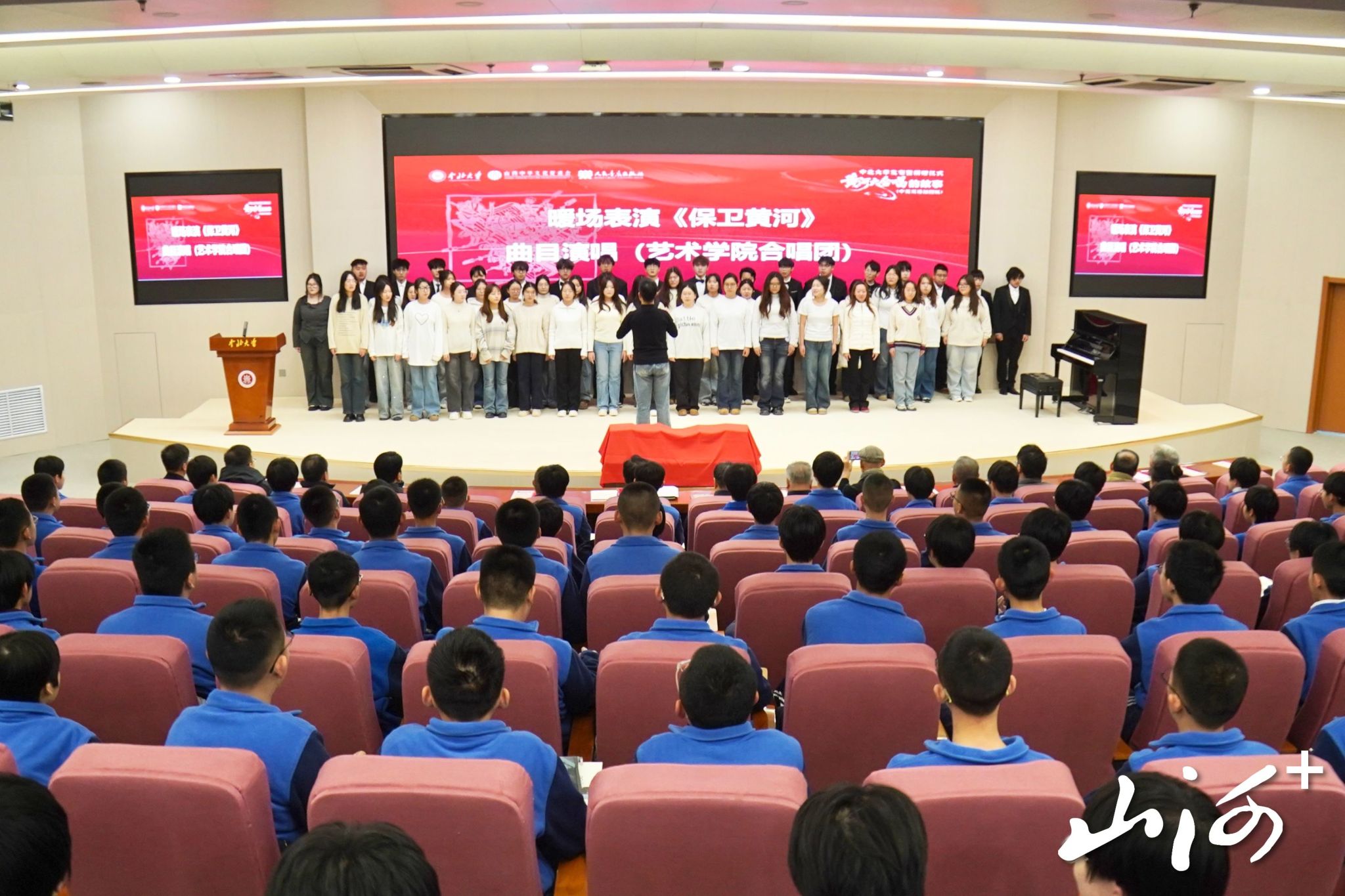 仪式后,张安东以《黄河大合唱》为题开讲,梳理作品1939年首演后的传播轨迹,解读其经久不衰的生命力,让现场观众深刻感悟背后百折不挠的民族品格。青年钢琴家石磊奏响《黄河颂》钢琴协奏曲,激昂旋律如奔涌河水般铺满现场;省城著名编导、朗诵艺术家禹保东倾情演绎《黄河之水天上来》,字句铿锵间尽展黄河的雄奇壮阔与千年文脉,将活动氛围推向高潮。