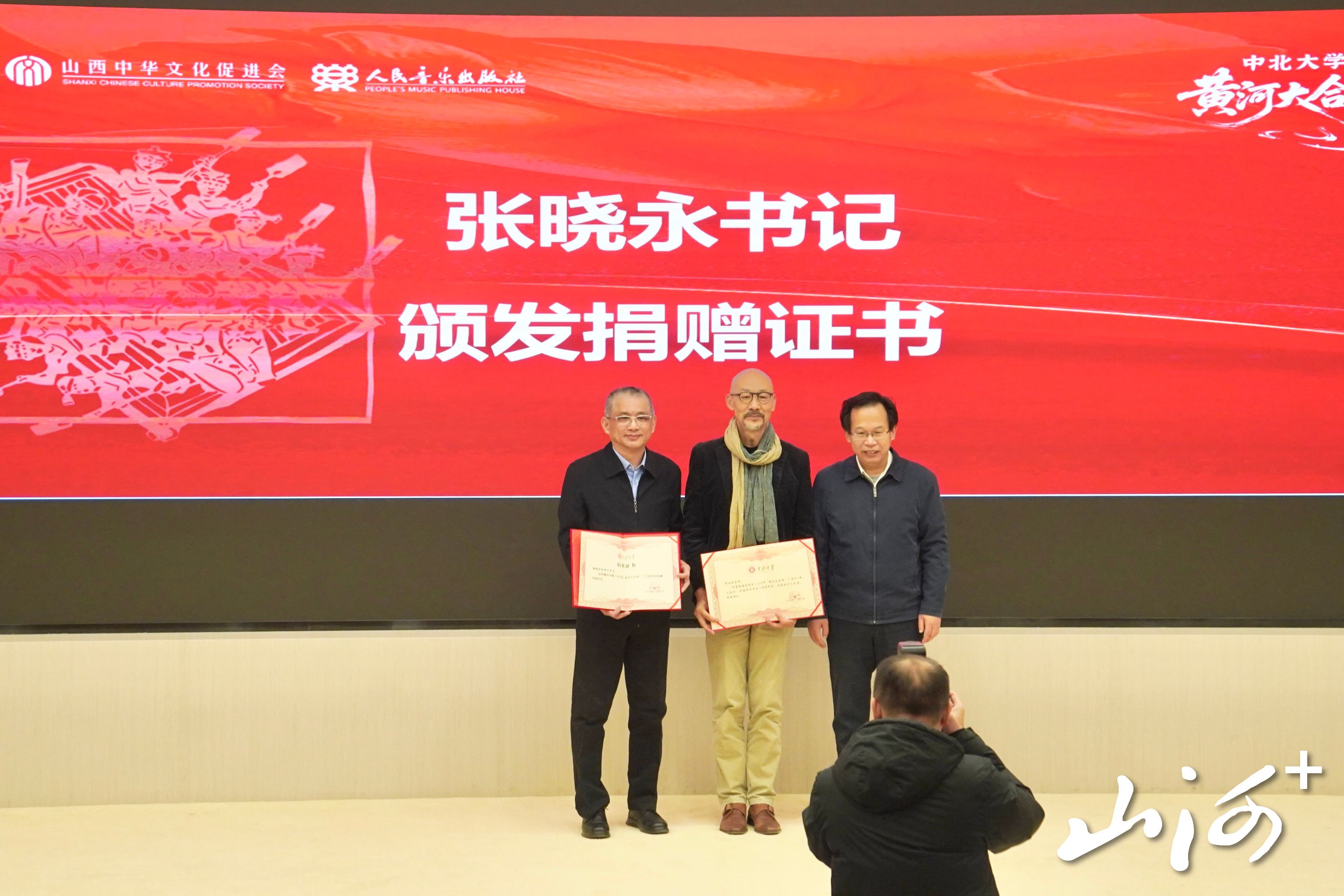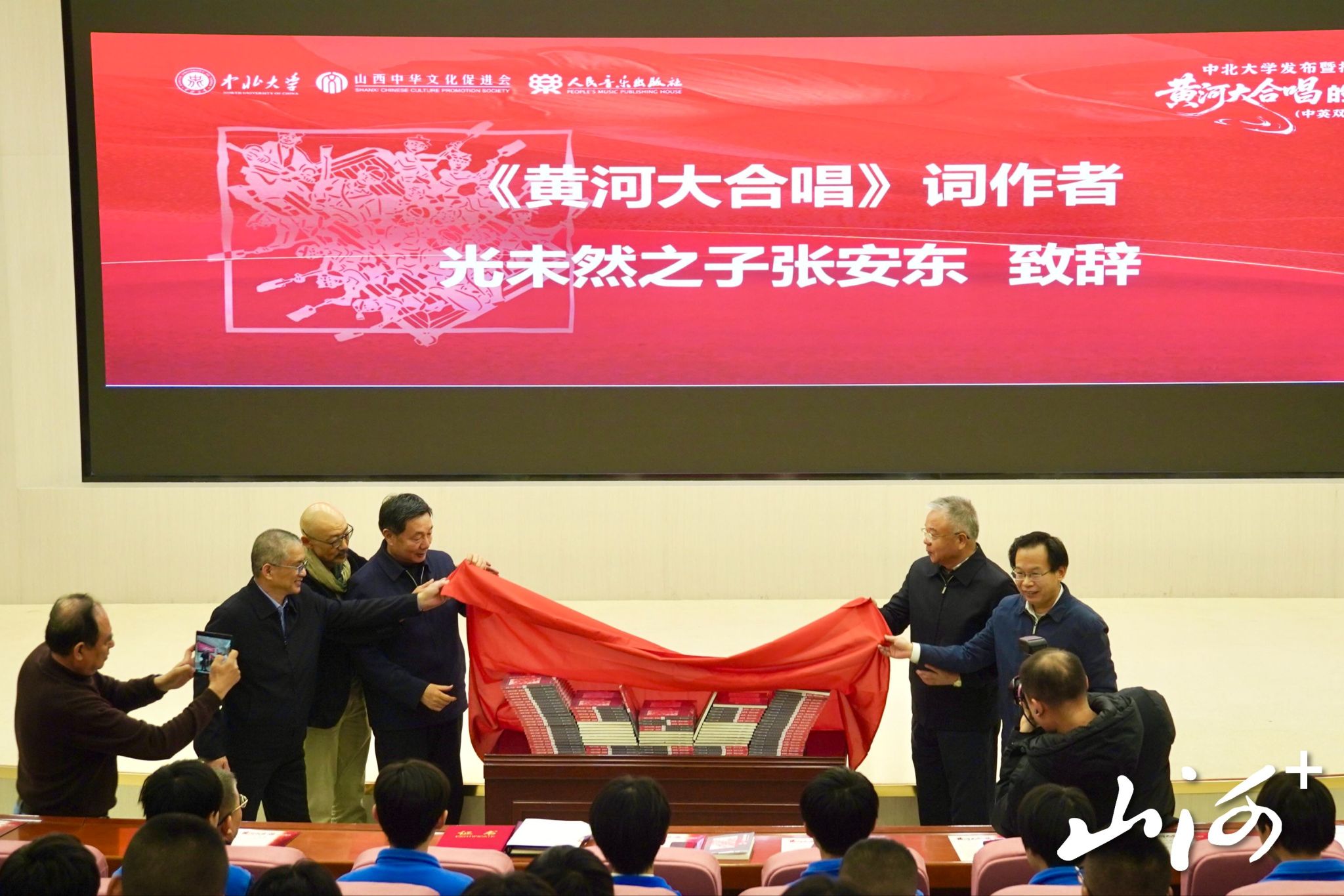 山西晚报·山河+讯 12月15日,由中北大学、山西中华文化促进会、人民音乐出版社联合主办的《〈黄河大合唱〉的故事》新书发布暨捐赠仪式,在中北大学瑾瑜国际会议中心举办。山西省延安精神研究会会长、省人大常委会原副主任岳普煜,山西中华文化促进会主席、省政协原副主席姜新文,中北大学党委书记张晓永,《黄河大合唱》词作者光未然之子张安东,人民音乐出版社代表黄平等出席活动,中北大学副校长杨风暴主持仪式。