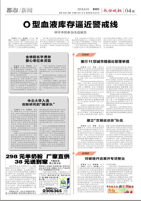 本报讯(记者张晓丽通讯员白洋)昨日,从中北大学传来好消息,国家自然科学基金委员会近日公布了2018年度创新研究群体项目评审结果,中北大学申报的“极端环境下的特种传感与动态测试方法”获批创新研究群体项目,这标志着中北大学在“特种传感与动态测试方法”研究方面达到了国内领先水平,这也是我省今年唯一一家获批单位,也是我省继2008年山西大学获批创新研究群体项目之后的又一次突破。