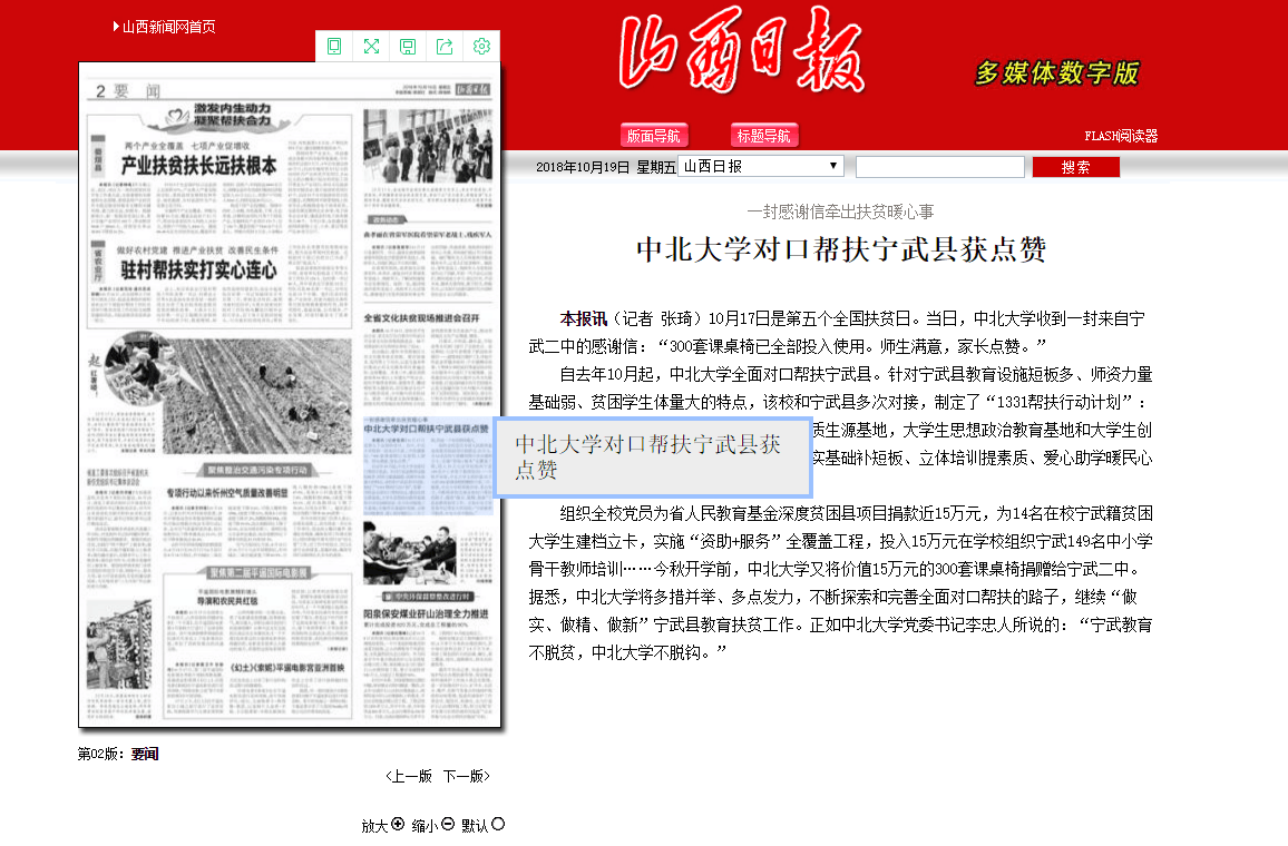 自去年10月起,中北大学全面对口帮扶宁武县。针对宁武县教育设施短板多、师资力量基础弱、贫困学生体量大的特点,该校和宁武县多次对接,制定了“1331帮扶行动计划”:签署一项校县全面对口帮扶协议,建设优质生源基地,大学生思想政治教育基地和大学生创新创业、实习实训基地三大基地;实施夯实基础补短板、立体培训提素质、爱心助学暖民心三大工程,形成一个有效帮扶模式。