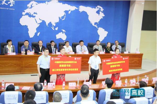 成立大会上,运动解剖学分会向边疆两所学校(黑河学院和丽江师范高等专科学校)体育学院捐赠了会员教师出版的教材和学术著作。
