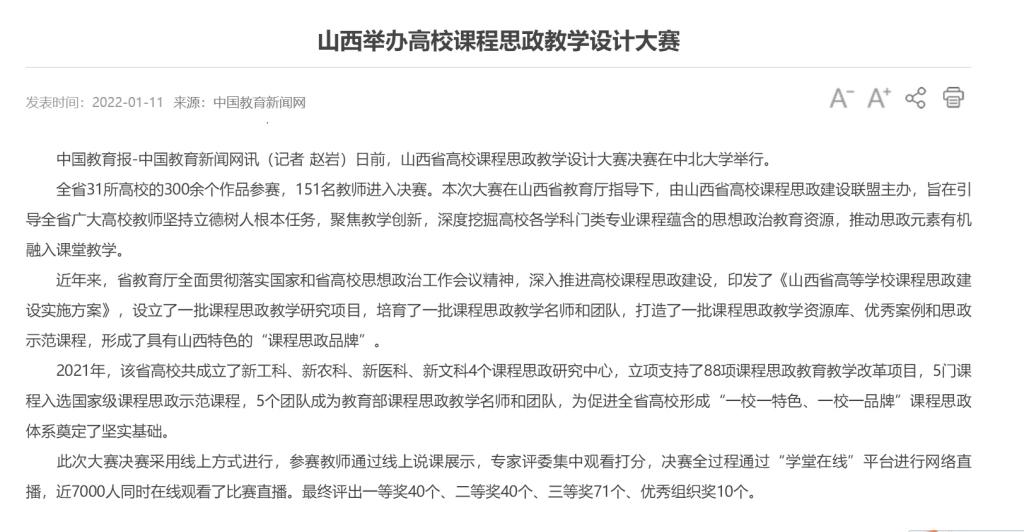 日前,山西省高校课程思政教学设计大赛决赛在中北大学举行。