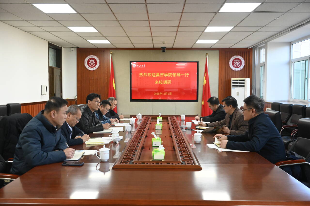 来志斌介绍了学校历史沿革及近年来在科学研究、学科建设、人才培养、服务国防等方面发展成就。他表示,新疆地域资源丰富,发展潜力巨大,中北大学愿与昌吉学院携手,共同探索建设创新研究基地、开展博士研究生联合培养等合作路径。同时学校将加强宣传,鼓励学术带头人、青年教师、科技干部参与对口支援,为提升双方办学水平和高质量发展注入新动能。