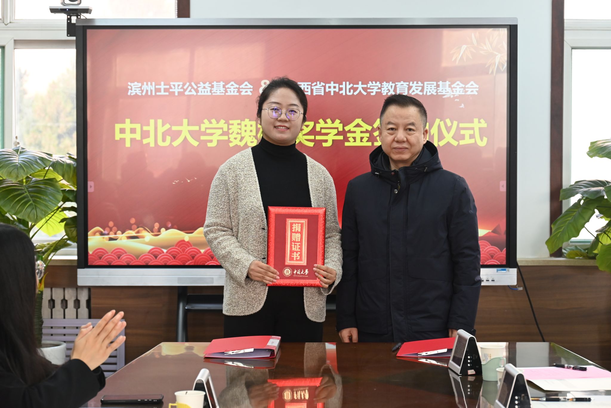 “中北大学魏桥奖学金”由士平公益基金会设立。该基金会由魏桥创业集团创始人张士平先生子女发起,旨在传承其“为国创业、为民造福”精神,探索创新人才育成模式、构建可持续人才发展体系。士平公益基金会此次在中北大学捐赠设立为期3年的“中北大学魏桥奖学金”,计划每年奖励15名优秀学子,为国家科研与教育事业储备后备力量。