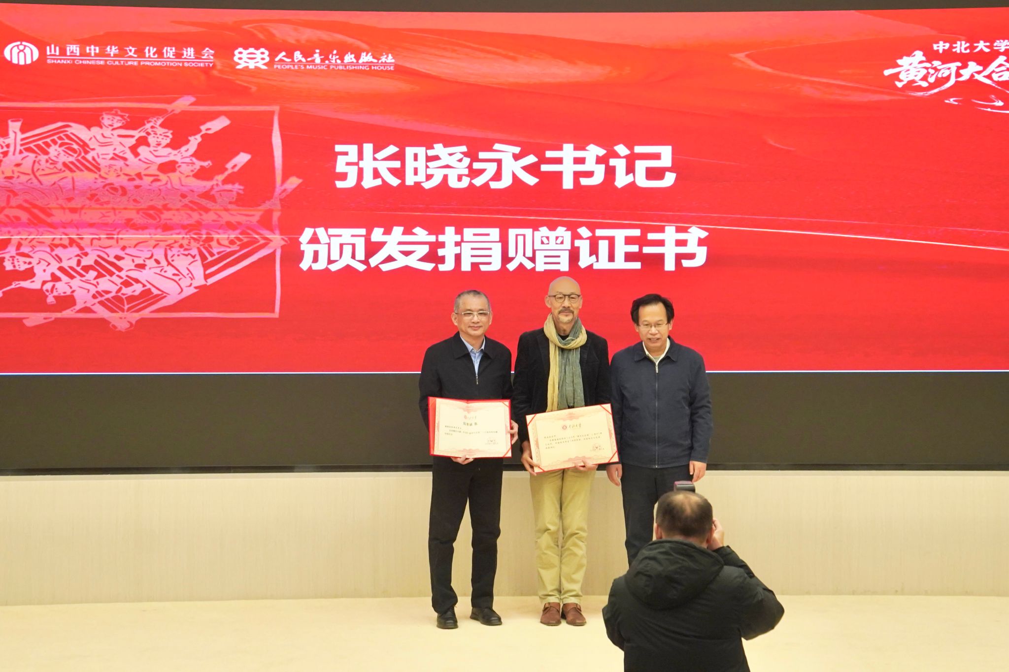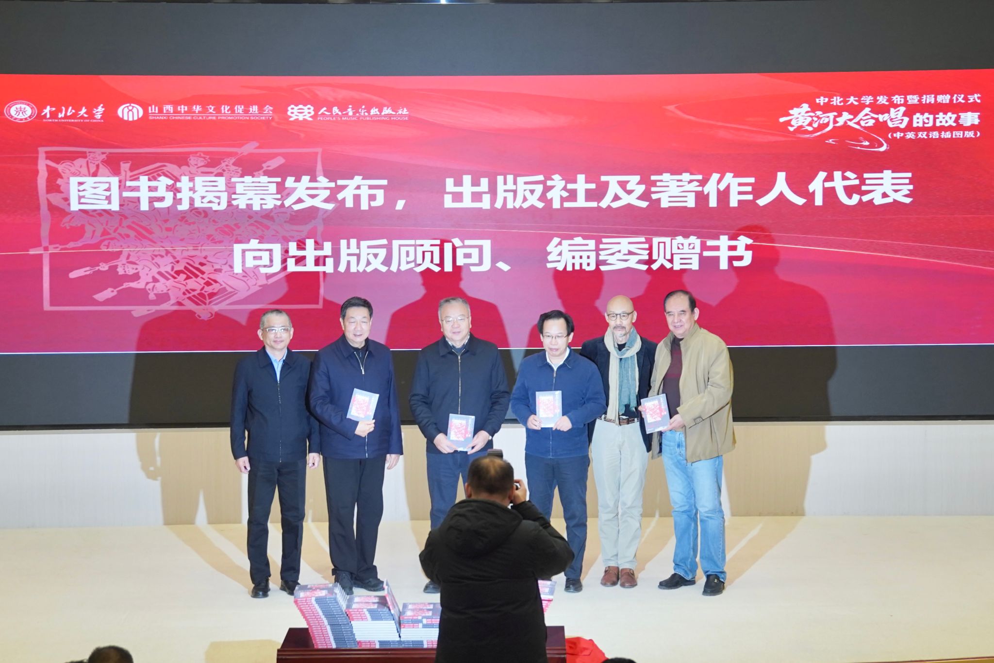 12月15日,由我校和山西中华文化促进会、人民音乐出版社联合主办的《〈黄河大合唱〉的故事》新书发布暨捐赠仪式在我校瑾瑜国际会议中心举办。山西省延安精神研究会会长、省人大常委会原副主任岳普煜,山西中华文化促进会主席、省政协原副主席姜新文,校党委书记张晓永,《黄河大合唱》词作者光未然之子张安东,人民音乐出版社代表黄平等出席,副校长杨风暴主持仪式。