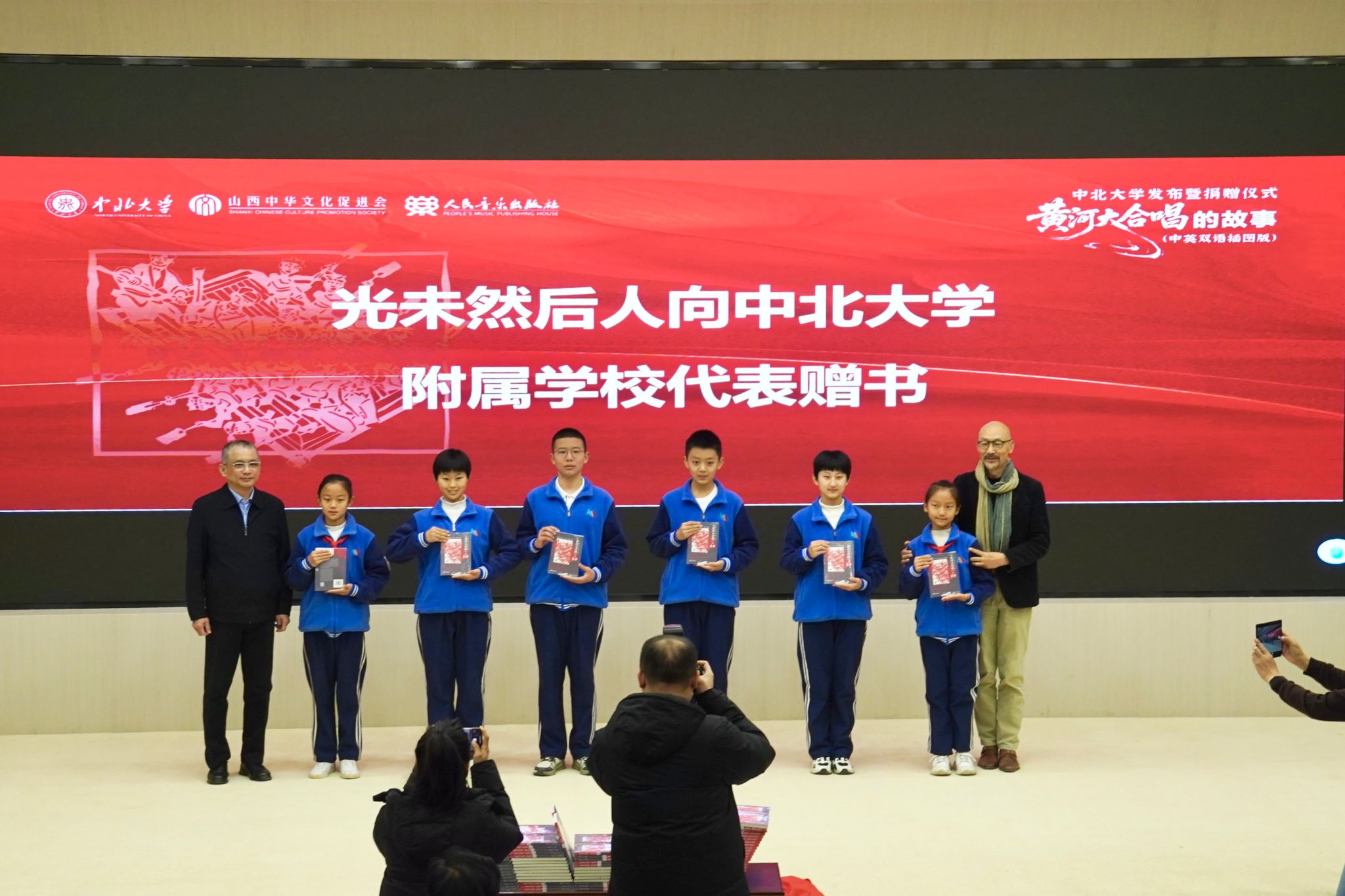 张晓永代表学校向捐赠各方致谢,表示该书入藏并捐赠给学校附中、附小意义深远。中北大学附属学校以“山水树人”为校本文化,秉持“讲述生命故事、提升人文素养”理念,而《〈黄河大合唱〉的故事》既含民族奋进宏大叙事,又承载爱国坚韧精神,与附属学校育人追求高度契合。学校将把图书用于图书馆、思政课堂,通过师生共读浸润心灵,并以此深化合作,推进红色资源挖掘与大中小学思政课一体化建设。