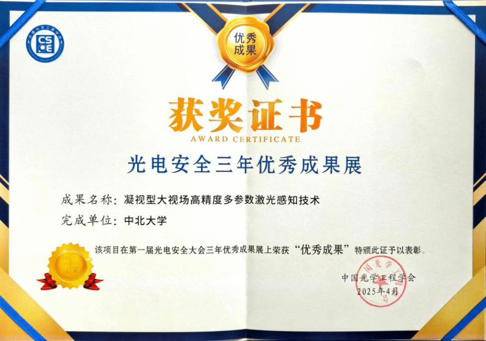 4月11日-13日,第一届光电安全大会在安徽合肥召开,会上同步举行了中国光学工程学会“光电安全技术三年优秀成果”颁奖仪式。我校信息与通信工程学院张瑞教授团队完成的“凝视型大视场高精度多参数激光感知技术”荣获三年优秀成果技术发明奖。