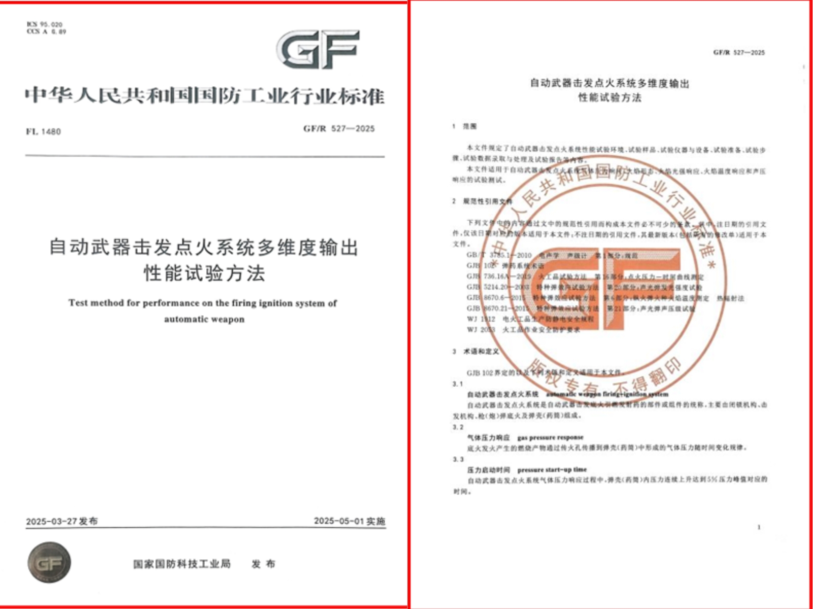 2025年3月,国防工业行业标准《自动武器击发点火系统多维度输出性能试验方法》正式获批发布。该标准于2024年列入国家国防科技工业局第一批国防工业行业标准制修订计划,由我校机电工程学院魏志芳教授团队牵头,联合中国兵器工业第二〇八研究所、重庆长江电工工业集团有限公司、中国兵器工业标准化研究所、哈尔滨龙江特种装备有限公司等多家行业优势单位共同编制完成,是我校首次作为牵头单位完成的国防工业行业标准,也是山西省获批的三项国防工业行业标准之一。该成果标志着我校在国防标准化与兵器学科建设方面取得重要突破,对推动相关行业技术规范化、提升我校在国防科技领域的学术影响力、服务“双一流”创建具有积极意义。