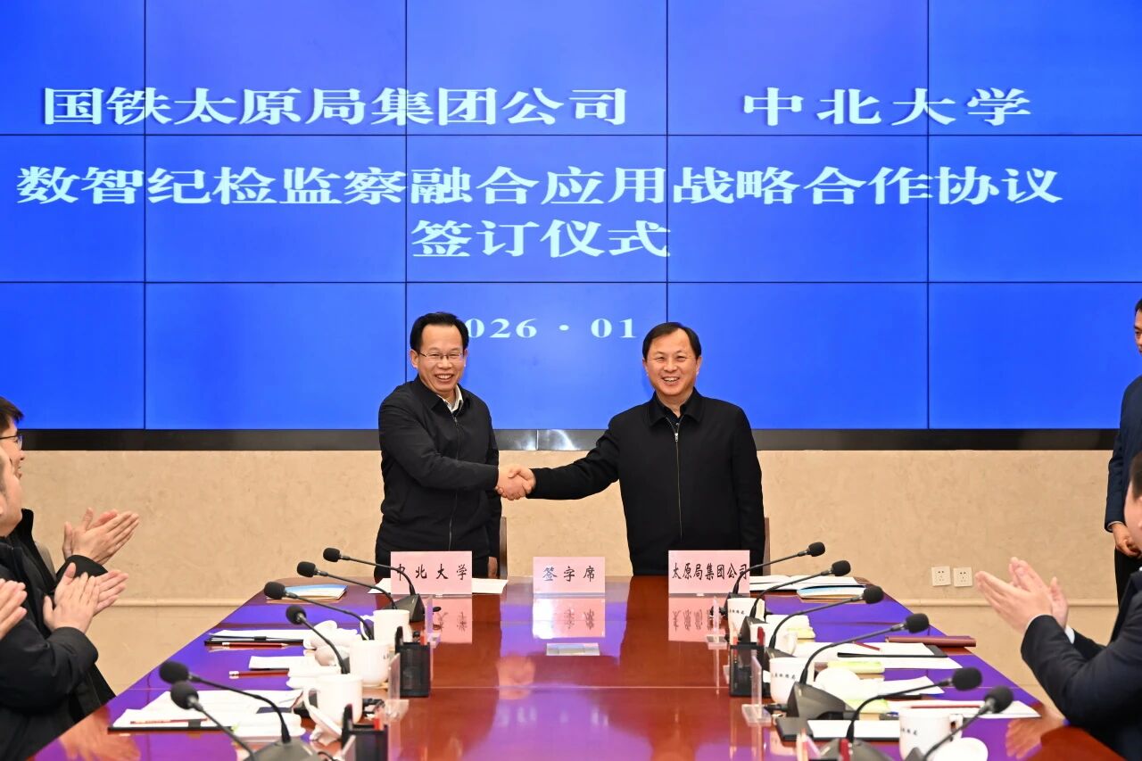 1月23日,我校与中国铁路太原局集团有限公司举行“数智纪检监察融合应用战略合作协议”签约仪式。校党委书记张晓永与太原局集团公司党委书记、董事长陆勇共同签署双方战略合作协议,标志着双方以信息化实战、实用、实效为导向,在深化数智纪检监察融合应用方面达成共识。
