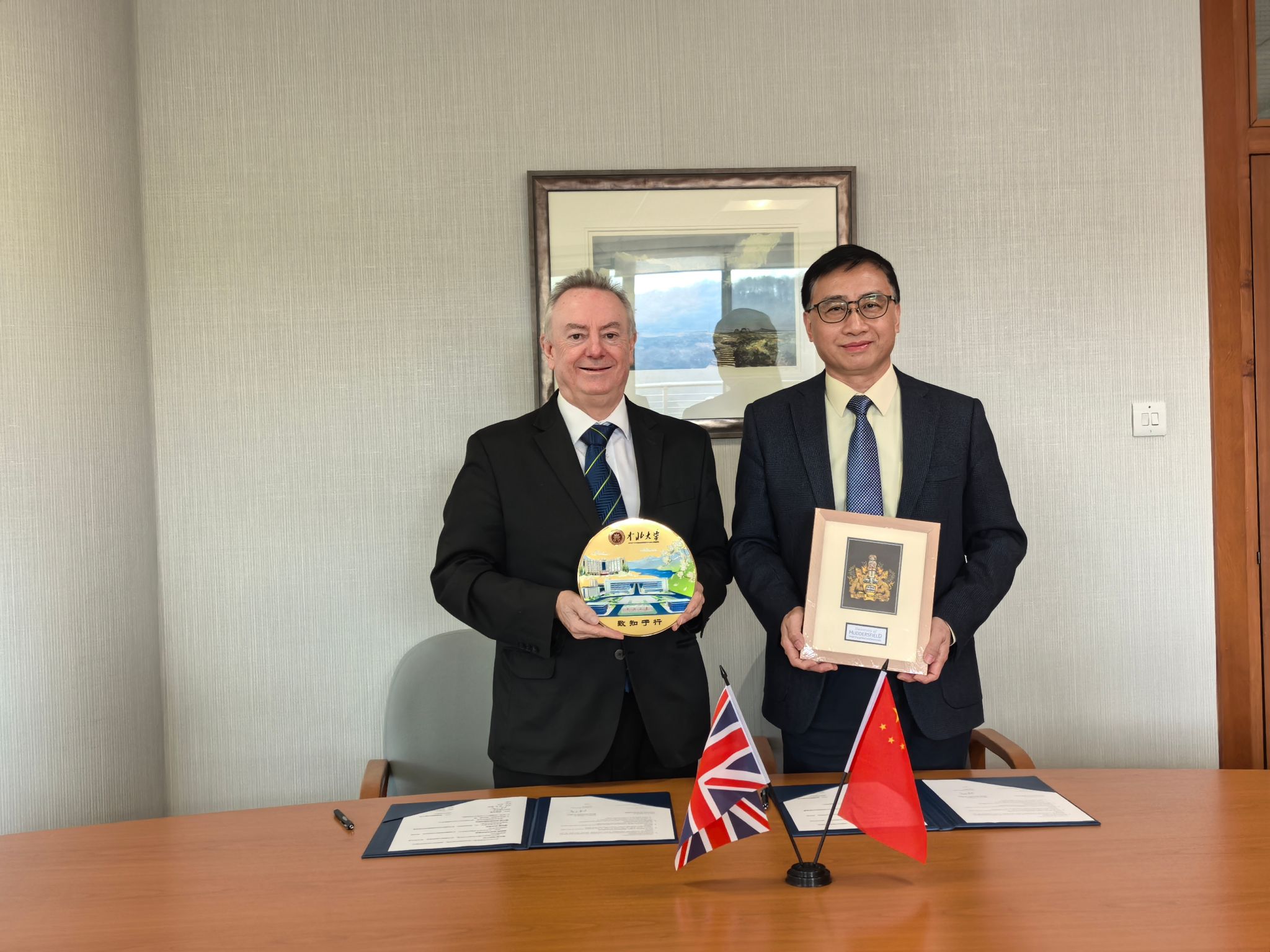 春节复工首日,2月25日,校长陈钱应邀访问英国哈德斯菲尔德大学,并签署两校合作谅解备忘录(MoU)。访问期间,双方举行多场会谈,就共同关注的学科领域、合作模式及未来发展方向进行深入交流。
