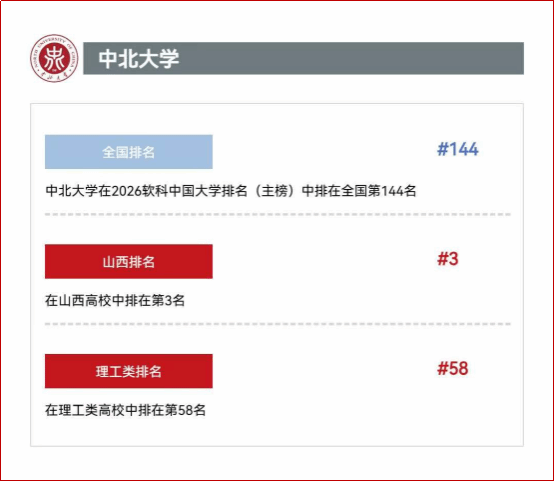 4月15日,高等教育专业评价机构软科发布“2026软科中国大学排名”,我校排名全国144名,较2025年排名上升29位,本次排名位次的提升幅度创学校历年新高,同时自2022年以来,我校在该榜单中已实现连续五年提升,累计上 -