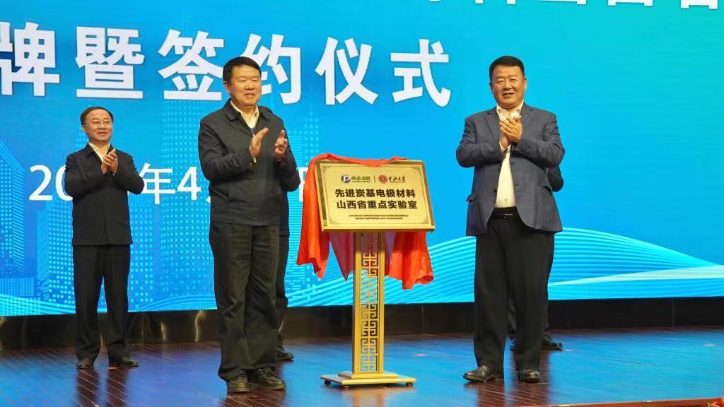 4月11日,中北大学与鹏飞集团联合共建的“先进碳基电极材料山西省重点实验室”揭牌仪式在孝义举行。该实验室依托校企双方各自优势,立足于省内资源与产业需求,开展以绿色产氢、碳基电极制备及成果转化为导向的理论设计、合成、性能测试及评价的基础和应用基础研究。致力于加快氢能储运、氢燃料电池性能等关键技术攻关和市场应用,助推氢能全产业链高质量发展,加快打造省级氢能特色专业镇和千亿级氢能产业基地。