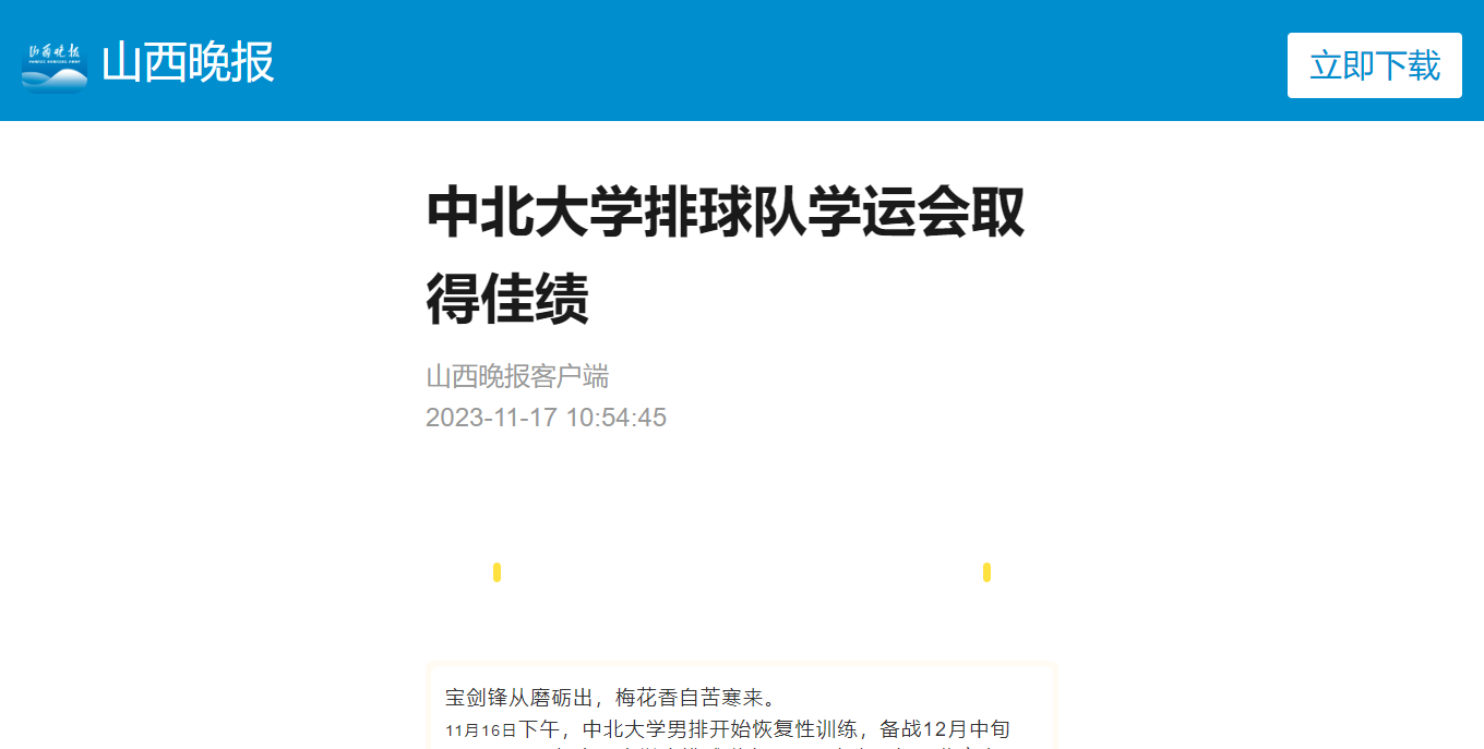 11月16日下午,中北大学男排开始恢复性训练,备战12月中旬2023-2024年中国大学生排球联赛(男子高水平组)北方赛区的比赛,而他们上午刚刚从南宁回到太原。在11月15日结束的中华人民共和国第一届学生运动会(广西)排球比赛中,代表山西的他们不畏强敌,敢打敢拼,最终取得全国第十名的佳绩。值得一提的是,这是山西省高校男子排球队首次打入全国学生综合性运动会的决赛阶段,面对诸多强手,打出自己的水平,局局必争,获得尊重。
