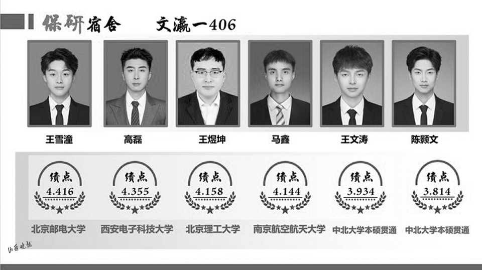 这是怎样的一个宿舍?6位同学平均综合学分绩点4.14,4年累计获得奖学金19次,累计获得校级以上荣誉50次;分别保送至北京理工大学、北京邮电大学、西安电子科技大学、南京航空航天大学、中北大学。