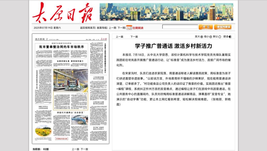 本报讯 7月18日,从中北大学获悉,该校计算机科学与技术学院党员先锋队暑期实践团前往岢岚县开展推广普通话行动,让“标准音”成为激活乡村活力、连接广阔市场的催化剂。