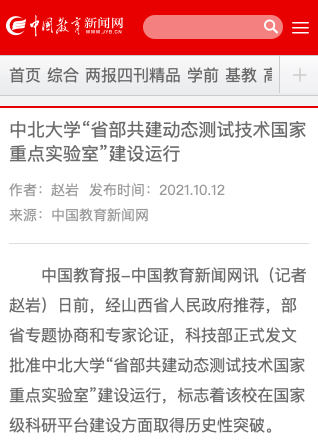 此前,该校“省部共建动态测试技术国家重点实验室”于2003年由科技部批准成为山西省第一个省部共建动态测试技术国家重点实验室培育基地。实验室自建成以来,立足于研究开发极端环境下动态过程参量原位测试的方法、技术和仪器,解决动态测试中的基础科学问题与关键技术难题。承担国家973、863、国家重点研发计划、国家自然基金委仪器专项和重点项目等高水平项目300余项。牵头获得国家科学技术发明奖5项、国家科学技术进步奖2项。近5年,科研经费超过10亿元,发表SCI论文400余篇、著作10部,授权国家发明专利320项。为我国载人航天、深空探测、海底观测等国家重大工程和海、陆、空、天4个军兵种提供了上万套产品,成果转化超10亿元。