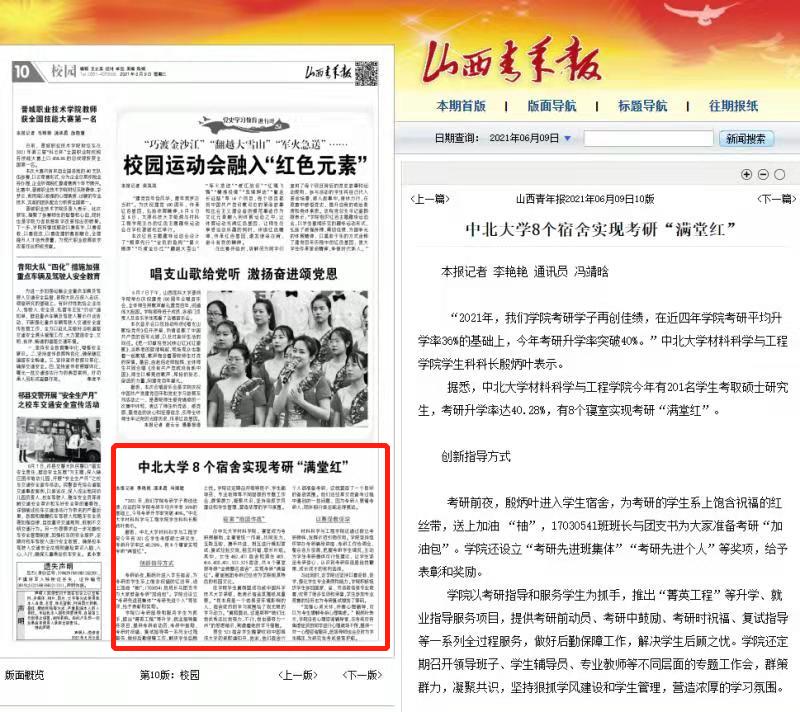 “2021年,我们学院考研学子再创佳绩,在近四年学院考研平均升学率36%的基础上,今年考研升学率突破40%。”中北大学材料科学与工程学院学生科科长殷炳叶表示。
