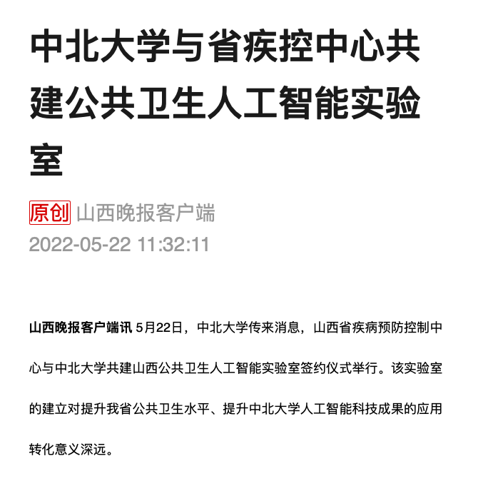 5月22日,中北大学传来消息,山西省疾病预防控制中心与中北大学共建山西公共卫生人工智能实验室签约仪式举行。该实验室的建立对提升我省公共卫生水平、提升中北大学人工智能科技成果的应用转化意义深远。