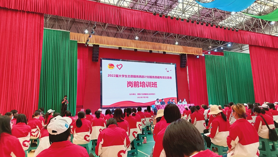 7月29日,来自全国各地的大学生志愿者在拉萨参加西部计划服务西藏专项志愿者岗前培训。