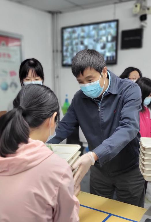 面对静态管理首日因餐饮工作人员不足而导致学生不能及时就餐等系列急难愁盼问题,校党委把学生的保供作为首要任务,免费提供三餐,确保学生优先,同时发出紧急动员,各部门、各学院负责人及党员干部带头,学校党政机关干部职工、各学院领导、教师、离退休人员、安保人员、教职工家属等志愿者纷纷伸出援手,到达后勤工作一线,协助后勤员工为学生备菜、配饭、送餐,用实际行动诠释了中北师生爱与责任的双向奔赴。