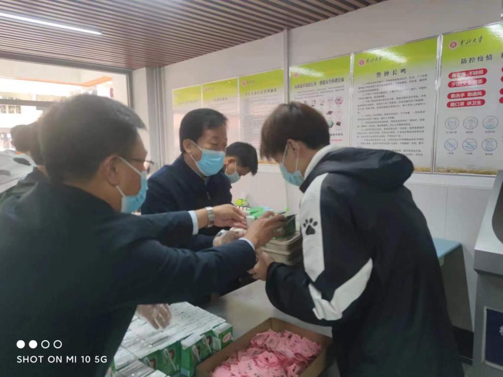 为确保全校学生在静默管理期吃得饱、吃得好、吃出幸福感,校党委书记沈兴全、校长熊继军带头与其他校领导深入各学生食堂指导工作,亲切慰问坚守一线的后勤人员和教师志愿者,对大家“舍小家护大局”的无私奉献精神和为全力保障学生餐饮作出的努力表示感谢和赞扬。并深入学生公寓,走到学生中间,为他们分餐,服务学生,嘘寒问暖。