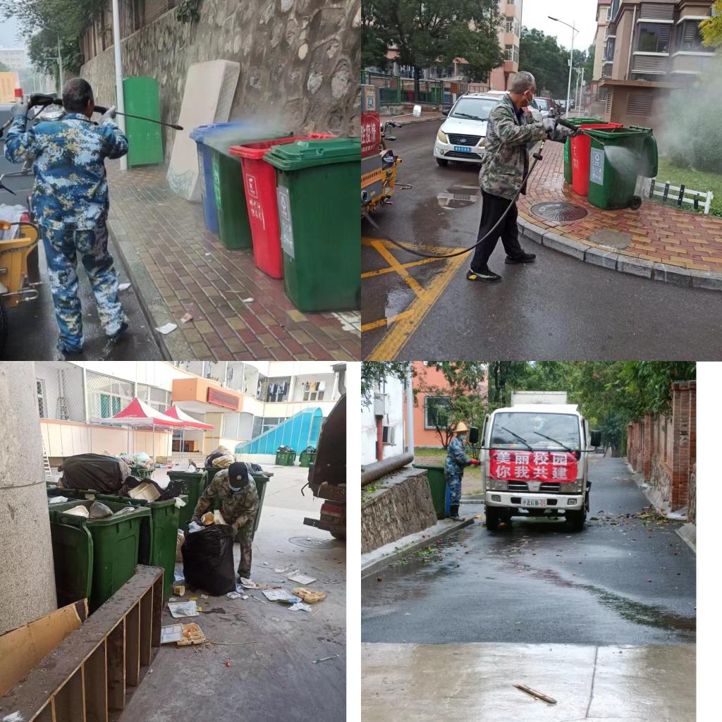 面对每天产生近8万个餐盒,垃圾量由原来的125立方/日突增到300立方/日,物业服务中心垃圾清运队每天加班加点工作10个小时以上进行清运。同时,对全校道路、办公场所、全校1000多个垃圾桶和重点部位包括确诊病例所在水果店外围进行消毒消杀。公寓服务中心全力做好公寓内的管理、保洁、消毒消杀以及垃圾清运出楼的工作,并做好学生餐券的发放,学生多、任务重。