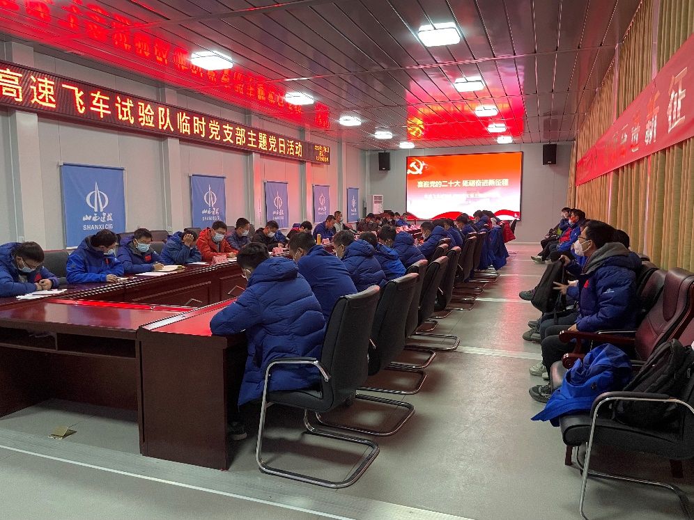 10月11日,高速飞车试验队临时党支部组织开展“喜迎党的二十大 砥砺奋进新征程”主题党日活动。高速飞车项目总师毛凯,总指挥、我校副校长李东光及航天三院、中北大学、山西二建、中铁六局各部门党员参加活动。