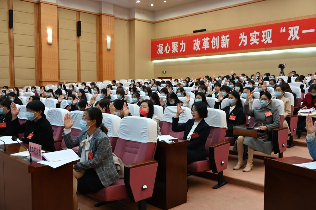 大会在庄严雄壮的国歌声中拉开序幕。大会听取了《筹备工作报告》,审议通过了《中北大学妇联第一届执行委员会委员选举办法(草案)》,选举产生了11名执行委员会委员,分别是王蕊欣、史育红、任雁、李晓、李彦华、苏芝兰、张怡、张清、张鹏、张学娥、张鹏娟(姓名按姓氏笔画排序),并召开第一届执委会委员第一次全体会议,选举产生了校妇联主席1人,副主席3人。其中,张清当选校妇联主席;任雁、李彦华、张鹏当选副主席。