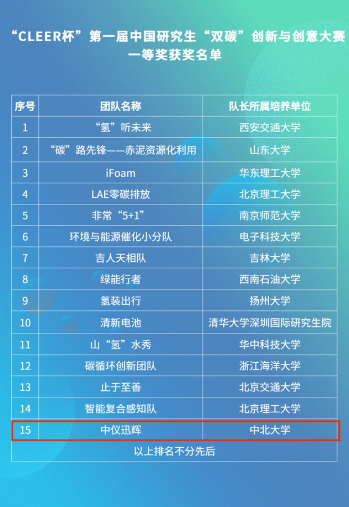 12月23日,“CLEER杯”第一届中国研究生“双碳”创新与创意大赛全国总决赛获奖名单公布。我校仪器与电子学院研究生靳昊宇、陈浚杰、李帅军、莫壁铭、施延慧、李昀泽组成的“中仪迅辉”队,以“基于TDLAS的碳排放CO2温度/浓度检测技术”项目,从全国2587支参赛队伍中脱颖而出,荣获全国一等奖(获奖率仅为0.7%),同时,在历时5天的网评环节中,该团队以3975票的优势获得“最佳人气奖”称号。团队指导教师郝晓剑荣获“优秀指导教师”称号。