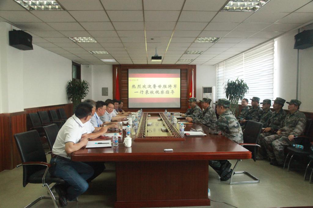 7月13日下午,中部战区陆军纪委书记、少将鲁世胜一行4人来校调研参观。中部战区陆军预备役高炮旅旅长蒋国华、政委宋磊、参谋长董海麟陪同调研。校领导李忠人、刘有智、赵贵哲及党校办、武装部、学生工作部(处)、校团委等负责人参加了调研座谈会。