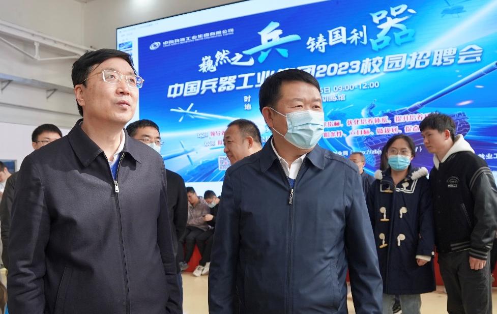 沈兴全先后来到中国兵器工业标准化研究所、北方凌云工业集团有限公司等单位展位前进行走访调研,详细了解单位用工需求、岗位设置、薪资待遇、行业发展,并向用人单位介绍学校人才培养情况。他对各单位长期以来给予学校的关心和支持表示感谢,希望校企双方进一步深化合作交流,不仅在人才供需且在产学研等方面赋能高质量发展。