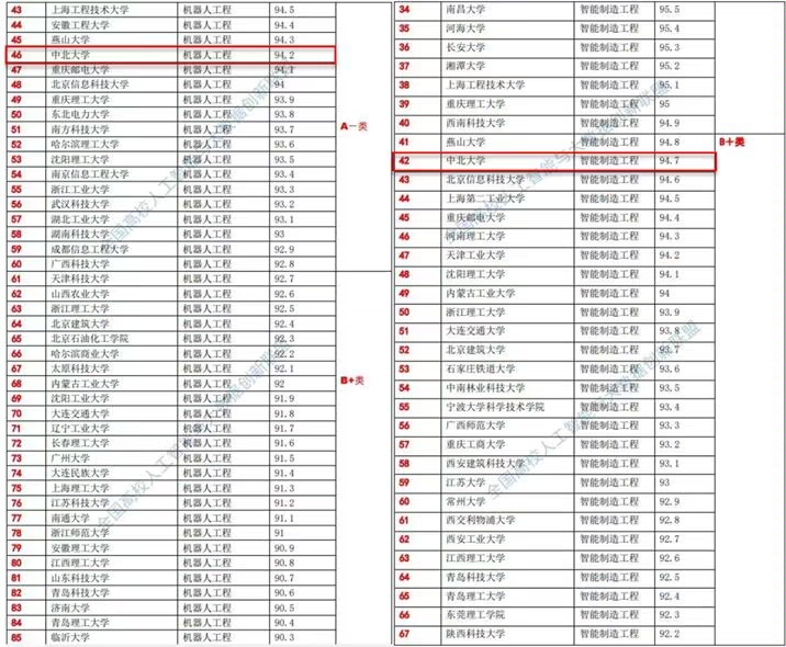 近日,全国高校人工智能与大数据创新联盟公布了“2023年全国341所普通高校机器人工程专业教育教学综合实力排行榜”以及“2023年全国303所普通高校智能制造工程专业教育教学综合实力排行榜”,我校机器人工程专业排名A-,全国排名第46名,我校智能制造工程专业在B+等级中排名第二,全国排名第42名。机械工程学院机器人工程专业和智能制造工程专业分别于2020年和2021年获教育部批准并于当年开始招生。