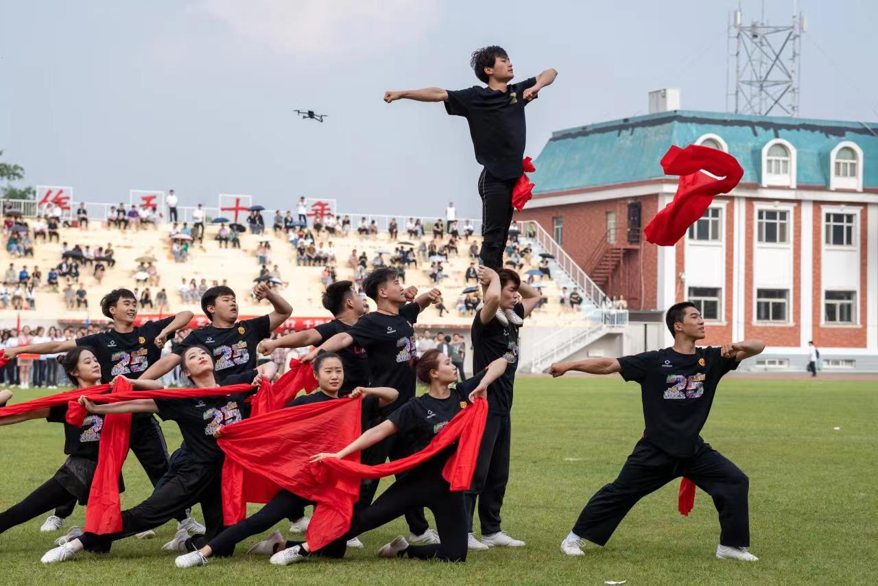 来自体育学院的技巧队和各体育课程代表队进行了精彩的开幕式表演,激动人心的技巧啦啦操表演《舞动青春》,经典歌曲合唱《万疆》,炫酷的箭阵表演,极具特色的山西非遗武术表演形意拳等节目,为在场师生献上了一场体育与文化的视听盛宴,充分展现了力量与艺术的完美融合。