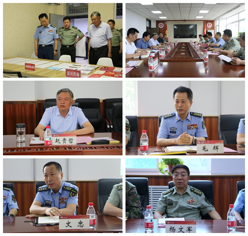 为进一步夯实兵员预征预储试点和实地观摩各项工作,6月6日下午,山西省军区动员局局长毛辉大校、太原警备区司令员文忠大校、政治委员杨文军大校一行来校实地调研兵员预征预储试点情况,现场走访查看兵员预征预储阵地建设、动态展示科目演示及全省兵员预征预储现场观摩会的筹备情况,并召开试点工作推进座谈会。副校长赵贵哲陪同实地调研并出席座谈会。