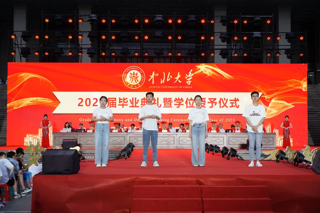 毕业典礼在全体师生奏唱庄严的国歌声中开始。校党委副书记曾建潮宣读《中北大学关于表彰2023届优秀毕业生的决定》,副校长赵贵哲宣读《中北大学关于拟授予2023届毕业生学位的决定》。与会嘉宾和校领导共同为优秀毕业生代表颁发获奖证书,校党委书记沈兴全为博士毕业生代表正冠拨苏。校领导共同为本科、硕士毕业生代表授予学位证书。