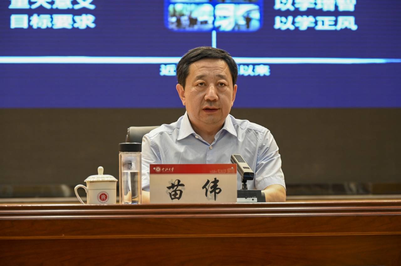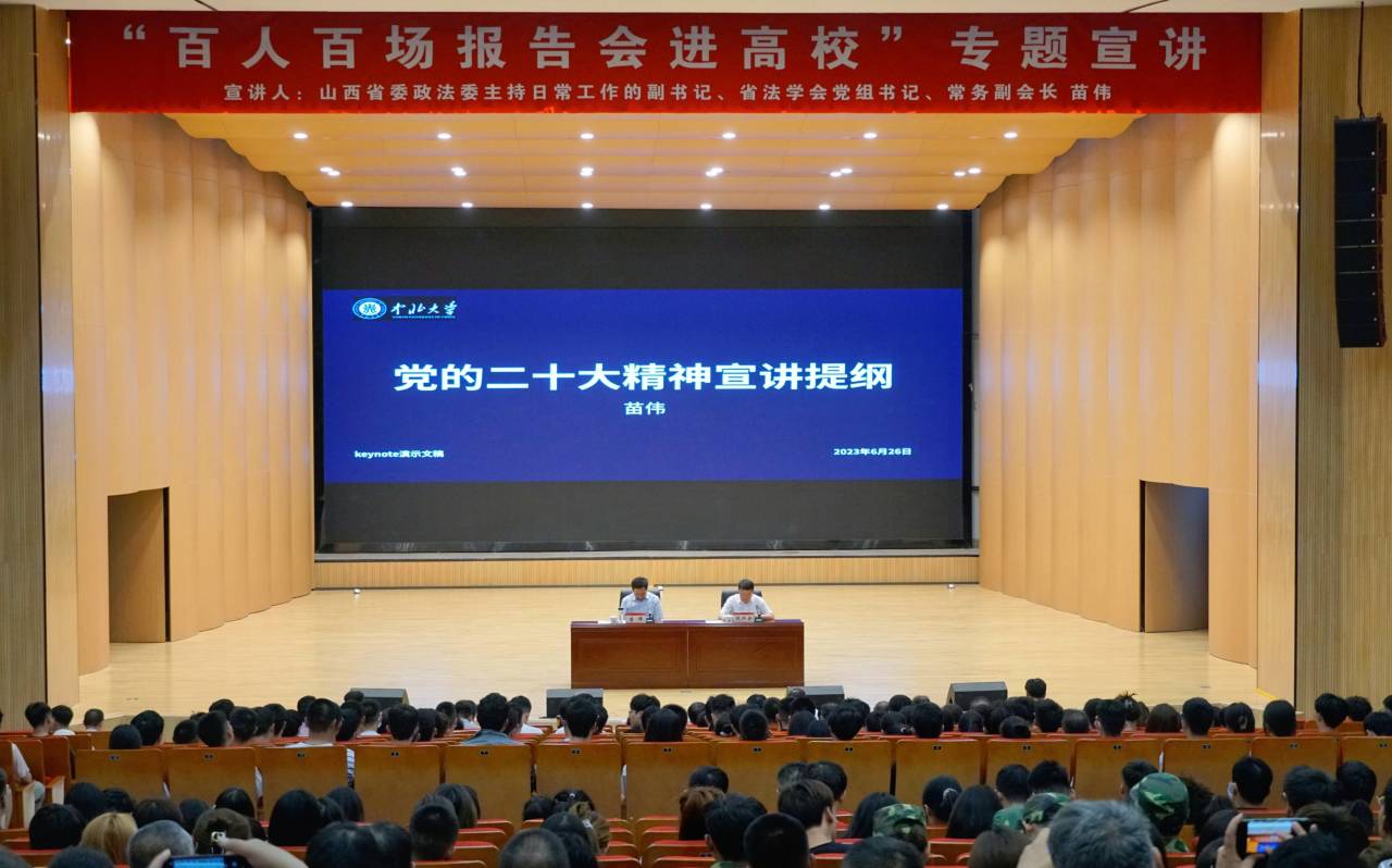 6月26日,“百人百场报告会进高校”专题宣讲在我校科艺苑报告厅举办。宣讲团成员、省委政法委主持日常工作的副书记、省法学会党组书记、常务副会长苗伟为我校师生作党的二十大精神专题辅导报告。会议由校党委书记沈兴全主持。在校校领导、正处级干部、思政课教师和辅导员代表、学生代表600余人聆听了报告。