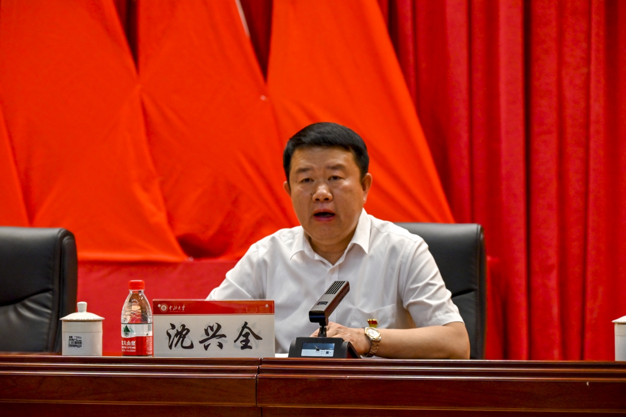 沈兴全首先代表校党委向受到表彰的优秀共产党员、优秀党务工作者、先进基层党组织表示热烈的祝贺!向奋战在学校各条战线的共产党员致以节日的问候!向为党和人民作出牺牲奉献的前辈先烈致以崇高的敬意!