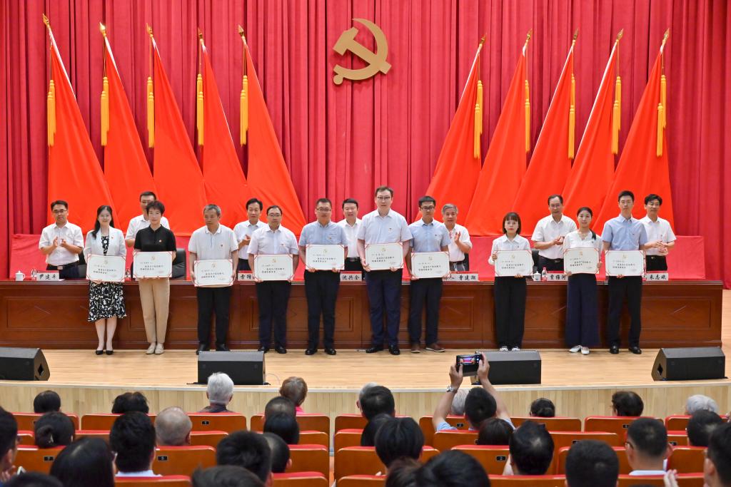 6月30日,我校庆祝中国共产党成立102周年暨“七一”表彰大会在科艺苑报告厅隆重举行。校党委书记沈兴全作重要讲话。在校校领导、党委委员、党务部门负责人、各基层党组织负责人及党员代表参加会议。大会由校党委副书记曾建潮主持。