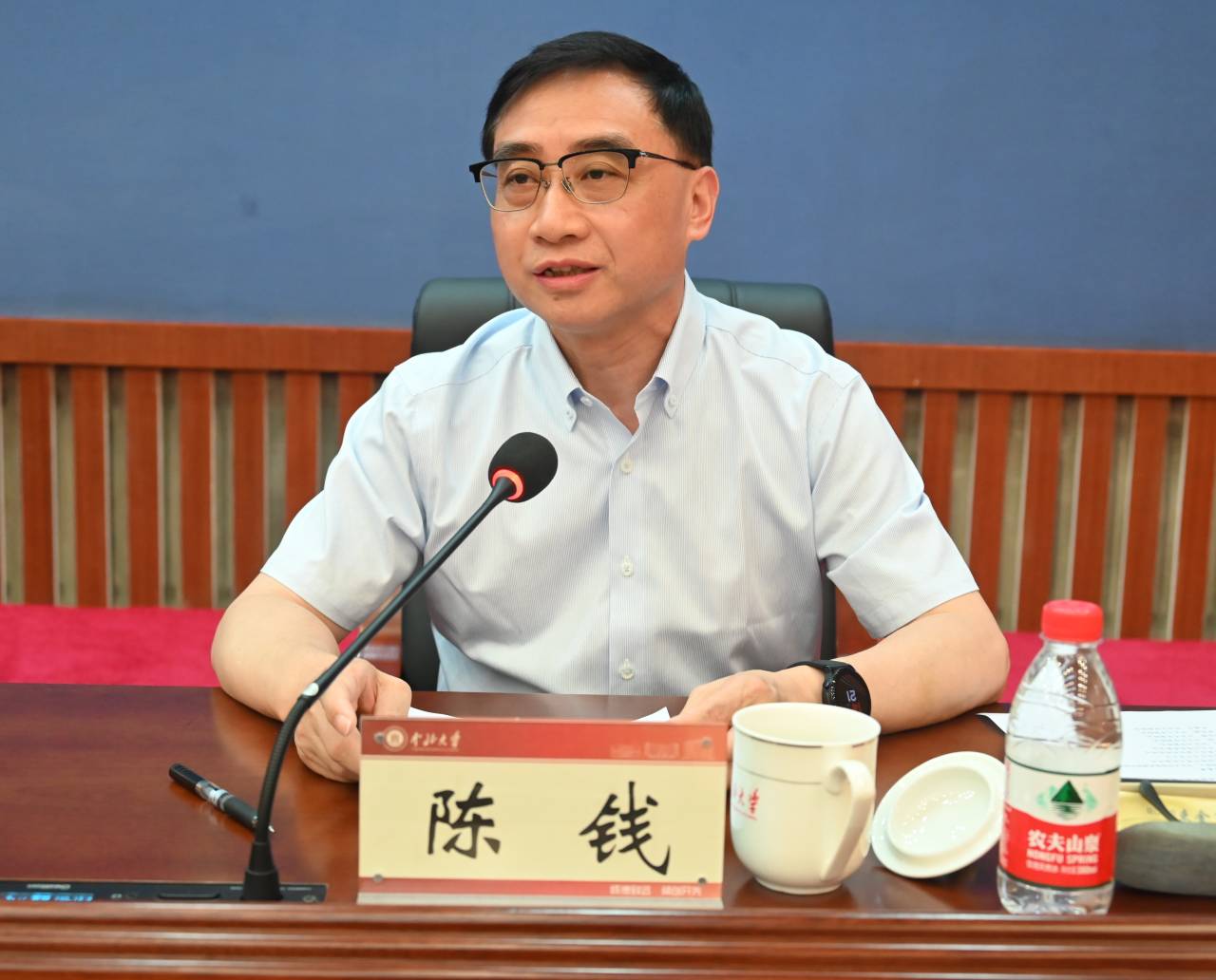 新任校长陈钱做表态发言。他表示,感谢省委、省政府的信任,让自己有机会从江南水乡来到三晋大地履职,从今天起正式成为了一名自豪的“中北人”。南理工和中北虽地跨千里,但都曾是兵器工业系统所属高校,作为声名赫赫的“兵工七子”“B8协同创新联盟”成员,两校同根同源,有着一样的报国情怀、一样的红色基因、一样的务实作风、一样的奋斗精神,这些都将为自己将来更好地扎根山西、融入中北、奉献学校奠定最为坚实的基础。他向大家郑重表态:一是聚焦立德树人,坚持正确办学方向;二是聚焦双一流建设,推动更高质量发展;三是聚焦改革创新,推动激发办学活力;四是敬畏法纪,坚持守牢廉洁底线。他表示,自己将与领导班子成员一起努力,实干拼搏、勇担重责,争取以实际行动与过硬业绩,不负组织的殷殷重托,不负师生的关怀信任,以实际行动助力中北大学在“双一流”建设的新征程中,书写出追赶超越的新篇章。